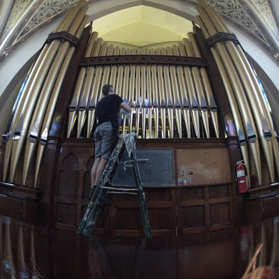 During instrument restoration, the pipe organ is still in use- only the repaired parts are detached.